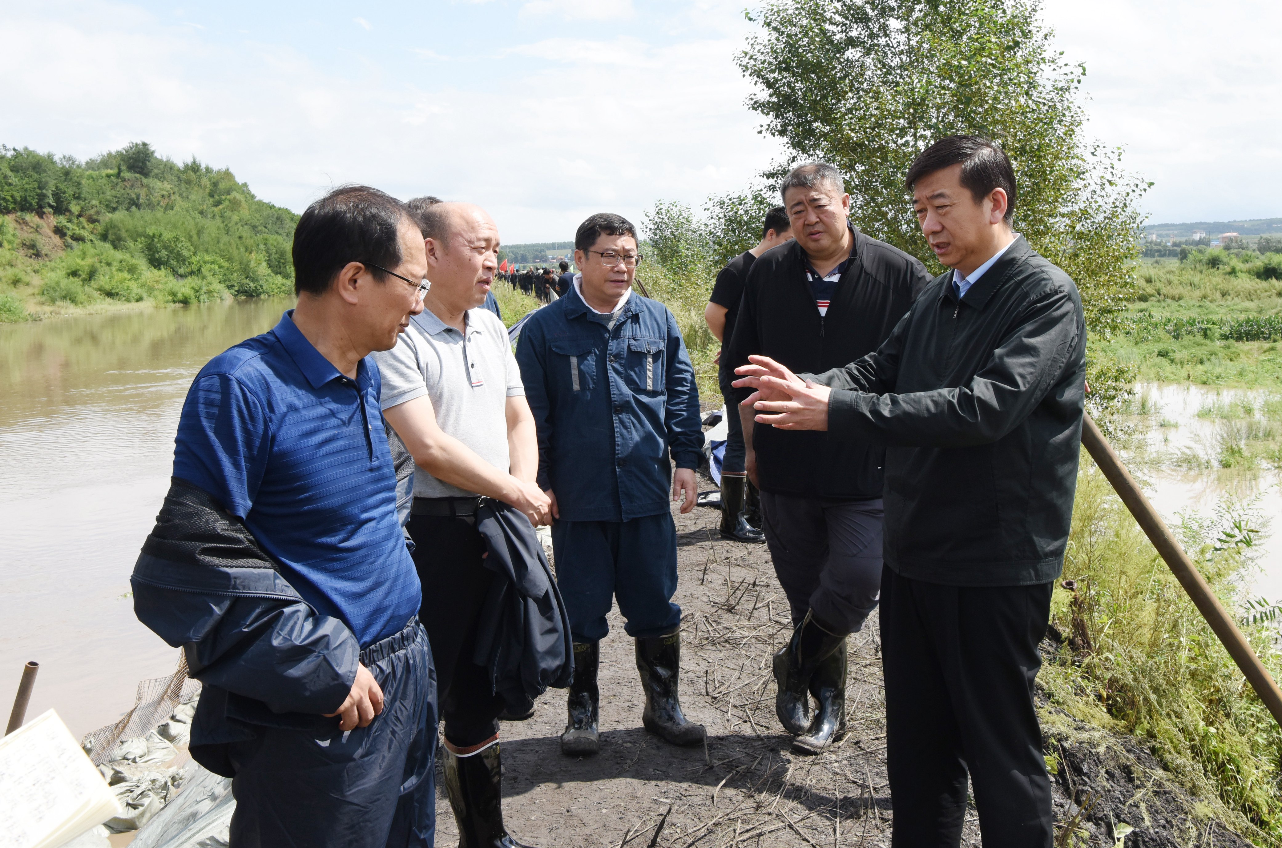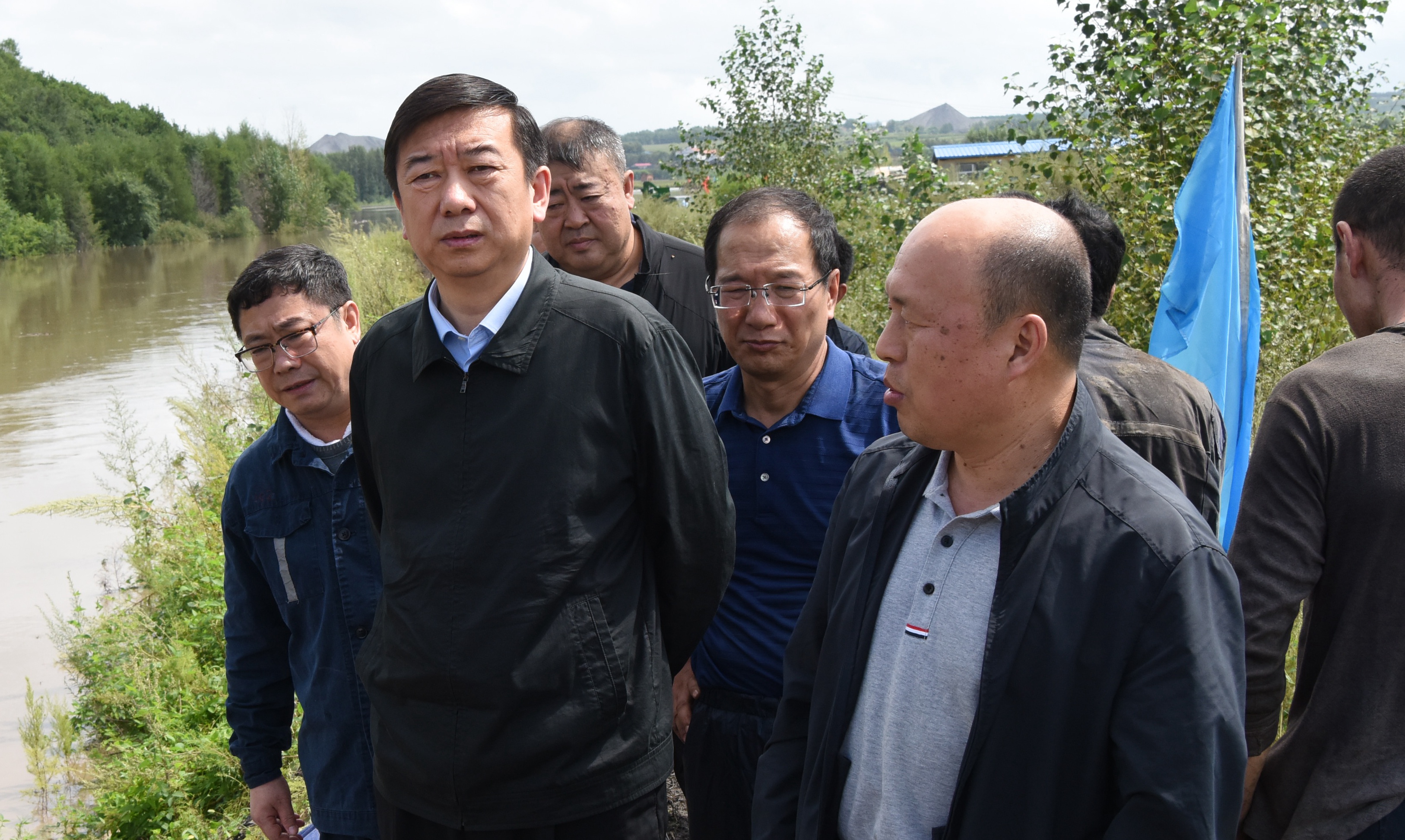 七台河矿业公司党委书记、董事长张长山,总经理刘金奇,集团公司相关部门有关人员参加防汛巡查。(张国伟)