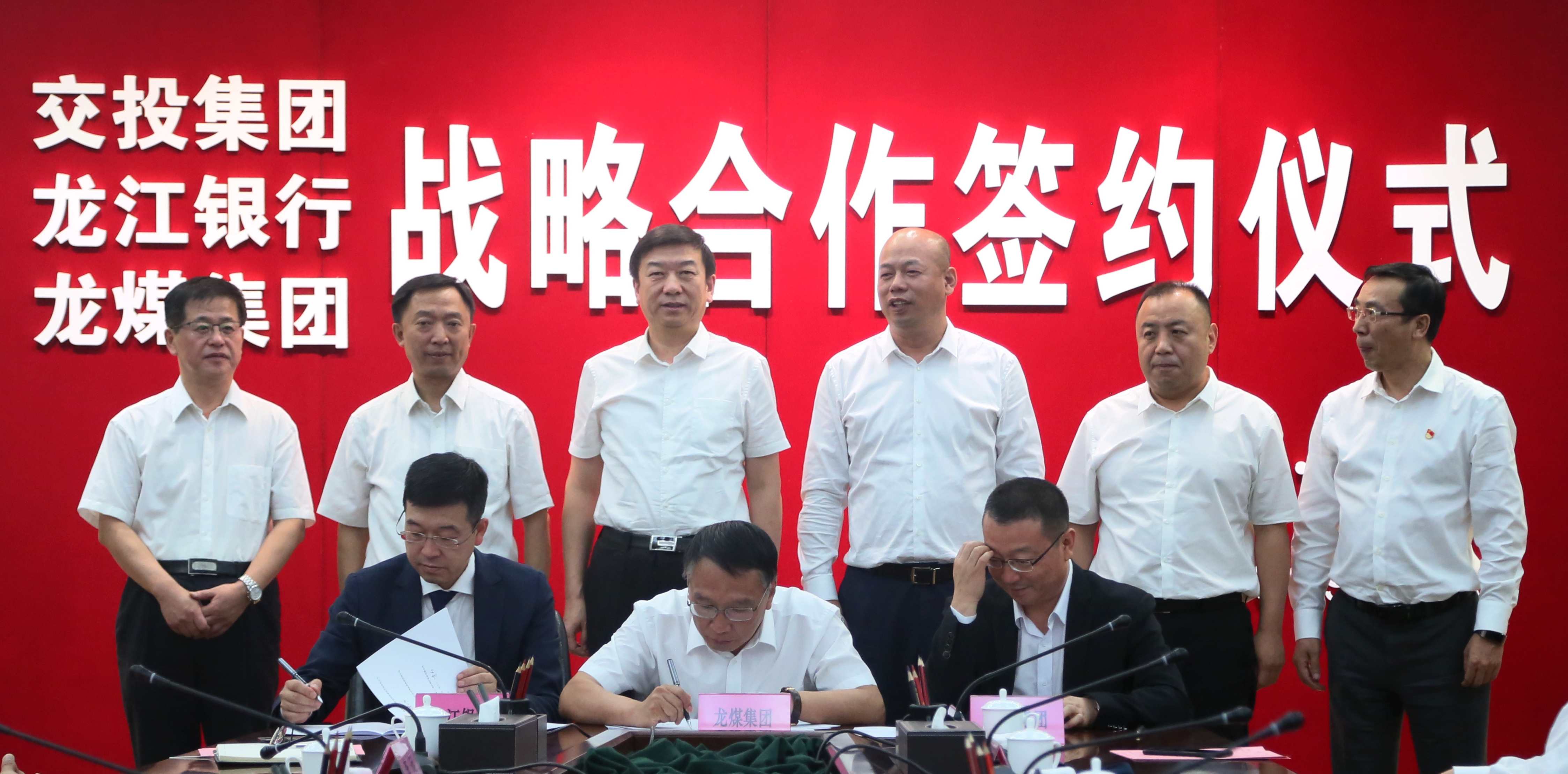 梁德代表龙煤控股集团、孙雪飞代表省交通投资集团、李崧代表龙江银行签约。