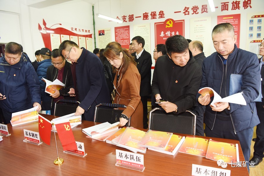 与会人员参观龙湖矿党支部标准化建设工作