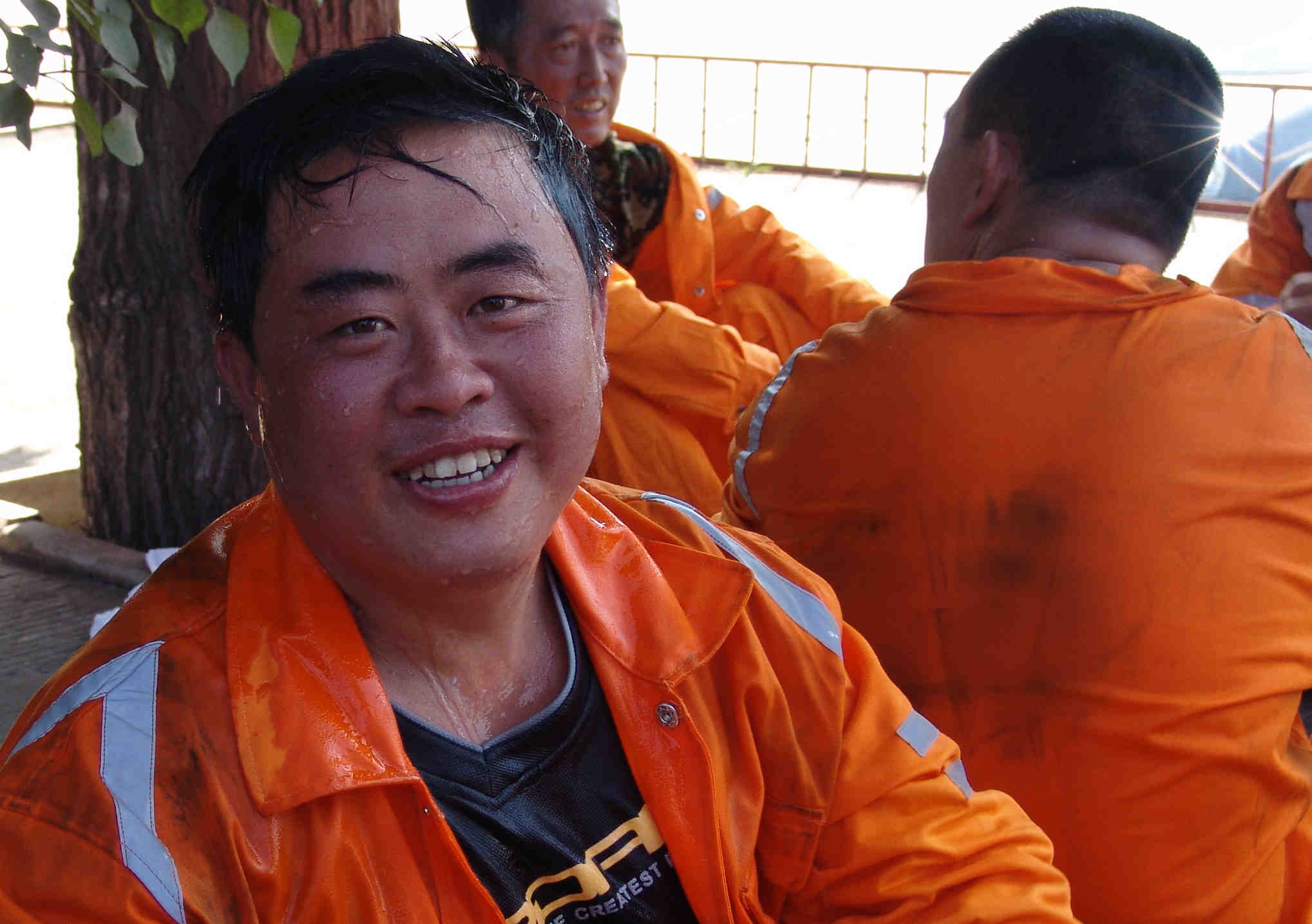 救护队员万米拉练后洋溢着胜利的喜悦