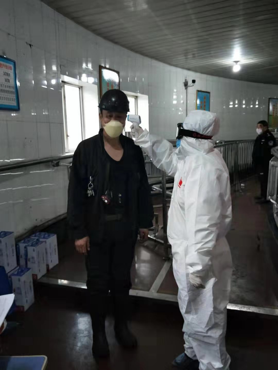 在滴道盛和矿,各卡点工作人员正忙碌着对每一名出勤职工进行体温检测。据了解,今天开工全矿出勤预计将有600多名职工。连日来,这个矿各级干部切实履行疫情防控职责,强化担当、统筹协调、狠抓落实,在完善防疫物资储备、疫情防控措施、复产复工验收等方面,做了大量卓有成效工作。在抓好制定专项应急预案、返岗员工健康情况体检、设立测温点、严格消毒登记、加强用餐、洗浴管理等工作的同时,严格执行复产复工验收制度,配齐满足开工复产要求的特种作业人员;制定并落实复工安全保障措施,严禁隐患不排除和安全措施不落实盲目复工;严格控制入井人数,并要求入井乘罐分批次,井下行走、乘车等间隔1.5米;所有返岗人员建立疫情防控管理档案,实现一人一档管理。