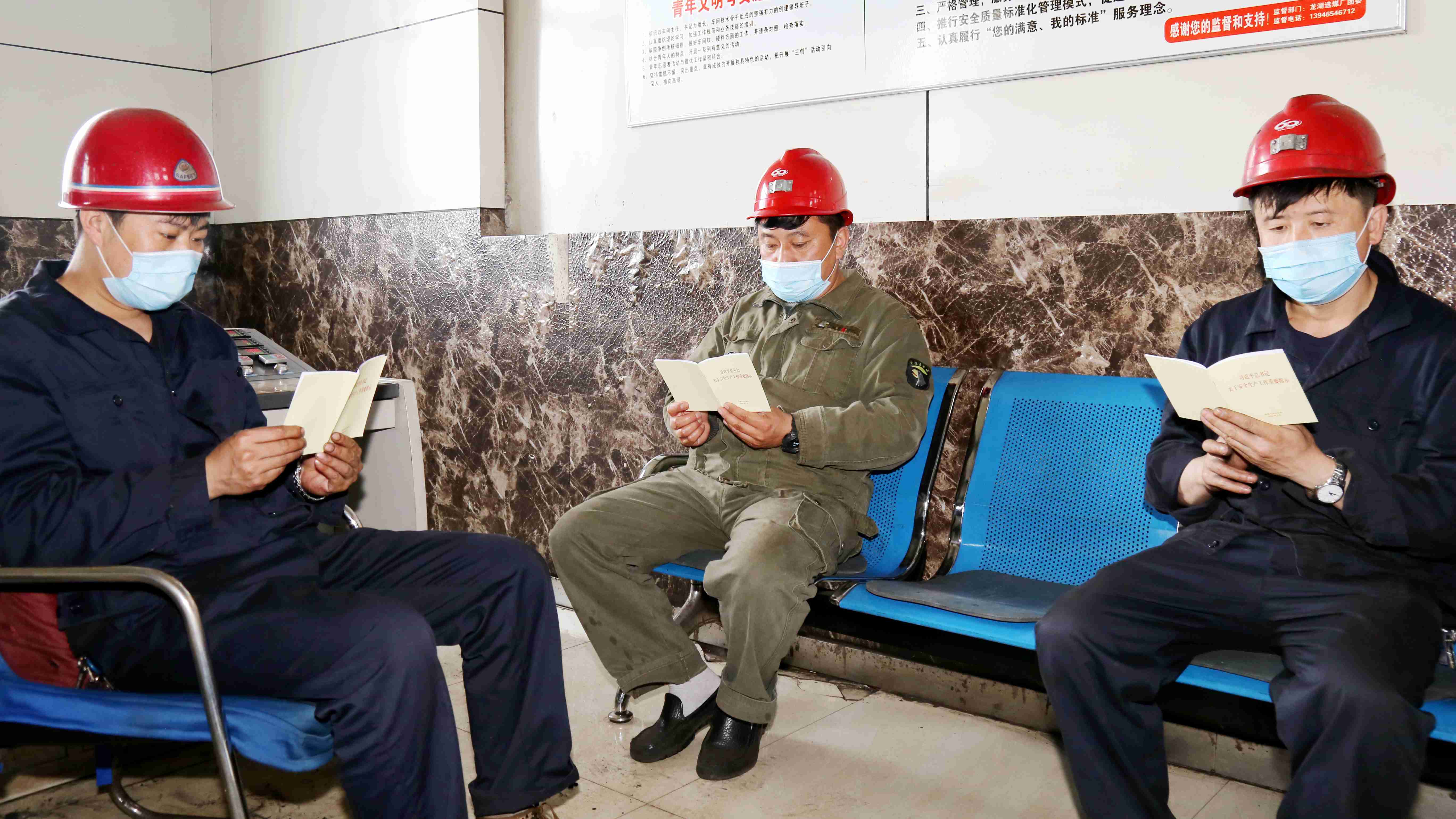 七矿公司上下深入学习贯彻习近平总书记关于安全生产工作重要指示精神。图为龙选厂重选车间班长组织当班职工班中学习习近平总书记关于安全生产工作重要指示精神