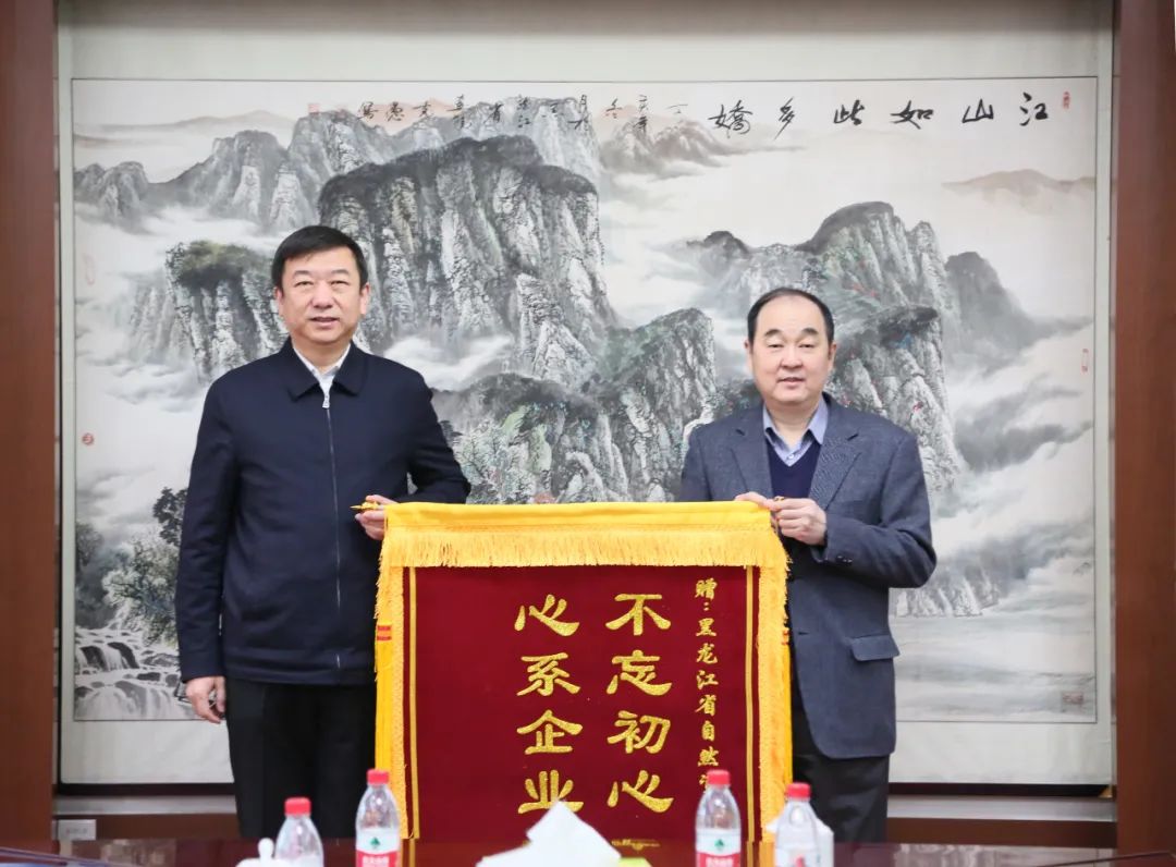 孙成坤代表集团公司党委、集团公司向省自然资源厅赠送了锦旗,对省自然资源厅领导及各部门不忘初心、牢记使命、心系企业、情牵龙煤的支持、关心和帮助表示感谢。希望通过双方共同努力,加快推进省内优质资源释放,为确保全省煤炭供给,推进“十四五”期间全省煤炭产业实现高质量发展做出新贡献。