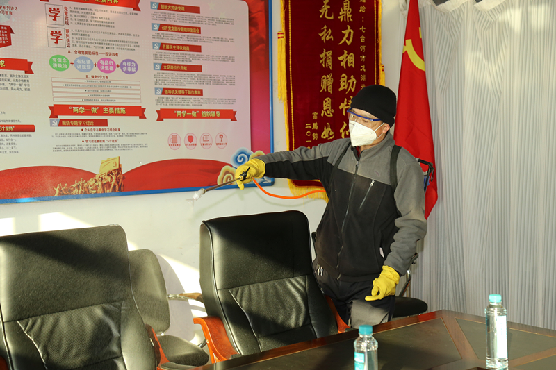 在疫情肆意蔓延的关键节点,王勇作为厂疫情防控的第一梯队成员,主要负责通勤大客车,上下班人员的体温测量、防疫物资发放、以及厂区、办公室、食堂、浴池等各处消毒工作。他带领生产部工作人员每天跟随通勤客车上班,对所有职工在车下进行体温测量并详实记录个人信息,并为每名职工发放一个口罩,保证职工乘车安全。每天到了单位后,他下了通勤车马上来到防疫工作重点单位“浴池”,他安排浴池专人负责,每次洗浴只能进入20人,全厂10个基层单位按计划错峰更换工作服、洗浴,避免人员接触。接着他又投入紧张 、细致的厂区消毒工作中,他为大家讲解新冠状肺炎病毒的危害,防疫措施以及消毒工作中,84消毒液的配比,个人防护的知识,保证消毒不留死角。为了更好的进行疫情防控,他白天将厂里的消毒防疫工作落实到细节,晚上整理汇总各项信息,做好向上级主管部门汇报的准备工作。并对第二天的工作进行计划部署,保证每一位职工的安全。