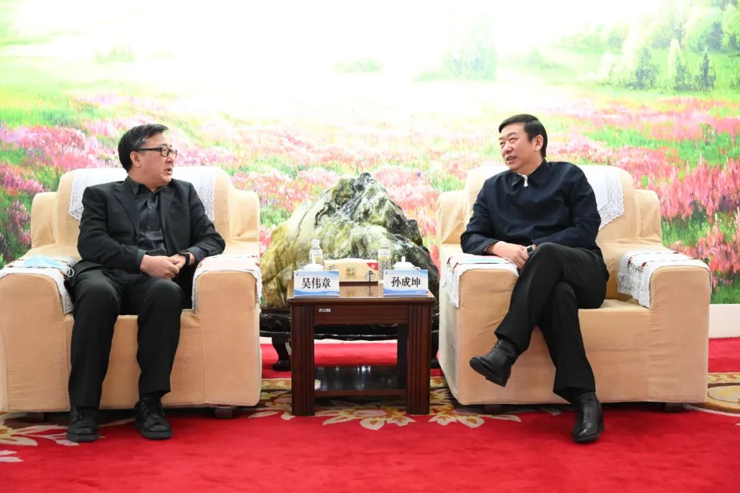 12月25日下午,集团公司党委书记、董事长孙成坤与素有“中国发电设备摇篮”的央企哈尔滨电气集团有限公司党委副书记、董事、总经理吴伟章一行举行会谈,就共同谋划省内清洁能源开发利用项目合作及央地国企未来转型发展等事宜进行了深入交流。