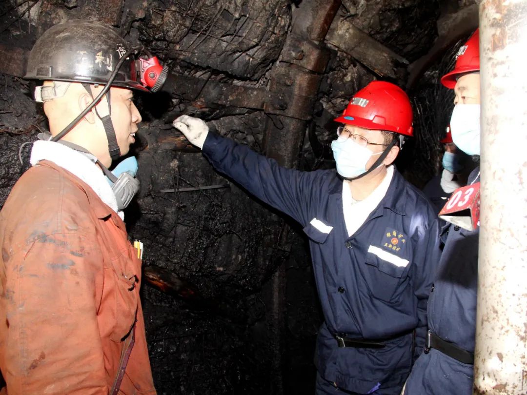 在益新矿综采二队工作面,于会军详细了解了工作面开采煤层灾害治理和工作面安全隐患排查等情况,并对益新矿针对工作面为软煤层开采采取超前对煤体注水凝结煤体防止顶板和硬帮抽漏及工作面降尘的做法给予肯定。在听取当班安瓦员的岗位描述后,于会军询问了工作面生产期间瓦斯和一氧化碳等有害气体监测情况,并叮嘱他要发挥好安全监管职能作用,做好一线职工的安全保护伞,为矿工兄弟安全保驾护航。