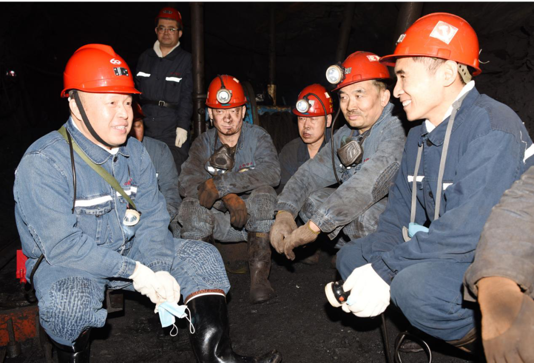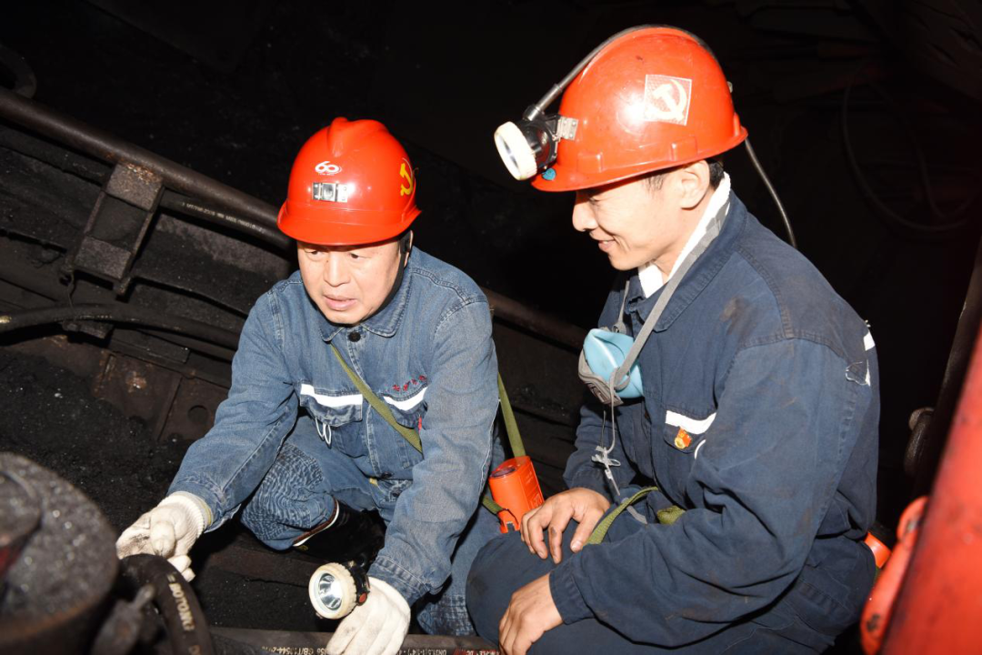在701采煤工作面,张长山和杨会军两位省党代会代表与当班矿工围在一起,在询问职工出勤、工资收入、矿工培训等情况后,向矿工们宣讲省党代会精神,并畅谈参会感受。