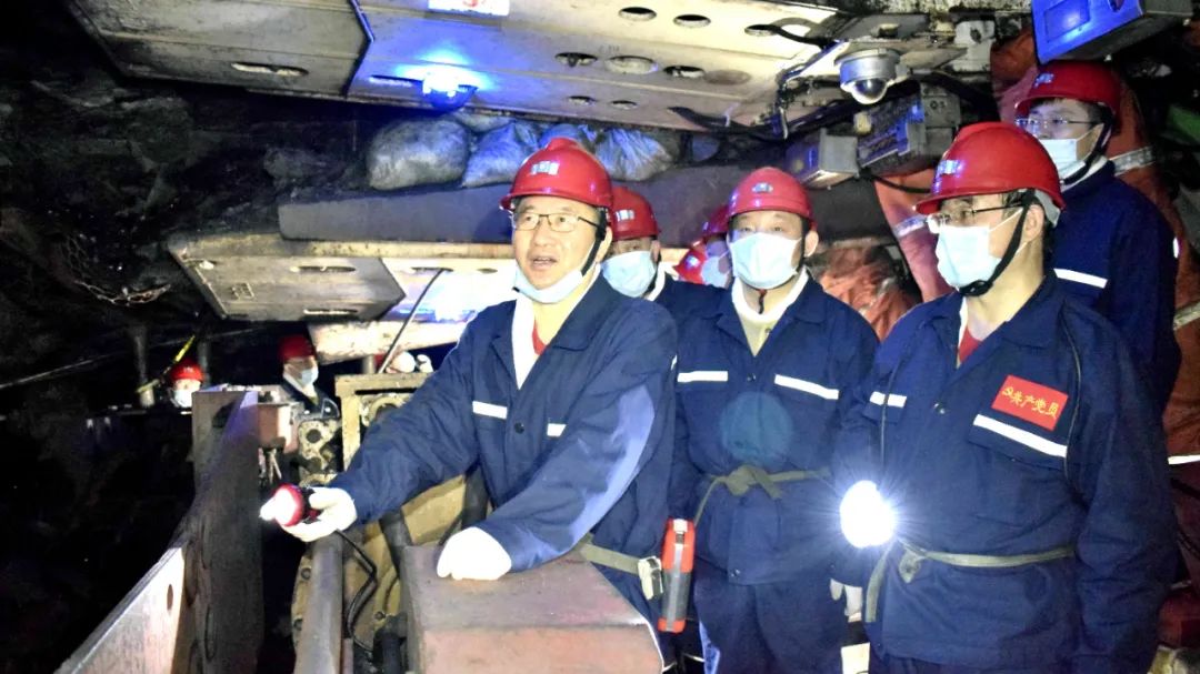 升井后,周德昶一行深入到城山矿安全生产指挥中心,重点查看了矿山智能化综合管控平台的运行情况,听取了智能化综采工作面远程操控、矿井机电设备无人值守、5G实时通讯及信息交互、科技创新等有关工作的介绍,并就矿井智能化建设相关内容与该矿领导班子成员进行深入交流探讨。周德昶指出,要以科技创新驱动发展,大力实施“科技兴企”战略,有序加快矿山机械化、自动化、智能化、信息化建设步伐,逐步推动老矿区焕发新活力。