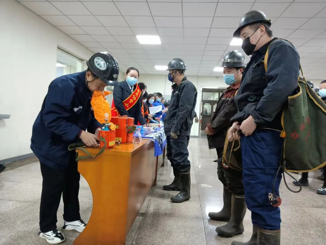 这一天,集贤矿在严格落实各项防疫措施的前提下,组织干部职工在入井走廊开展了安全签名、自救器实操比赛、安全知识有奖问答、安全理念解读和安全生产法律法规宣传等系列活动。