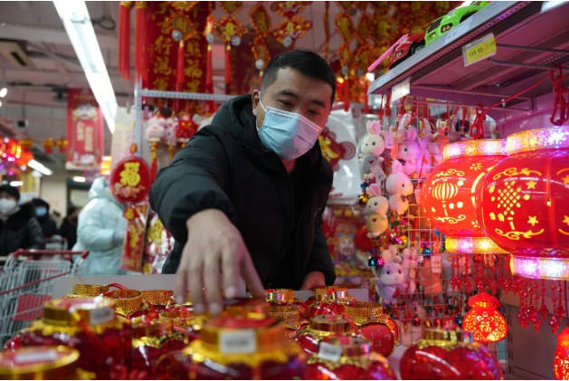 中国结、大红灯笼、年画、春联……将菜市场春节氛围值“拉满”,询价、议价、挑选的人们挤在各类摊位前,烟火气升腾,年味儿浓浓。