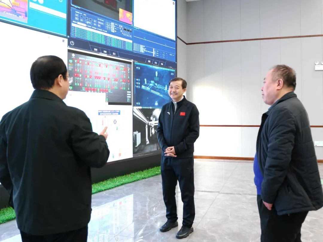 在城山矿安全生产指挥中心,刘鹏飞重点查看了矿山智能化综合管控平台的运行情况,听取了智能化综采工作面远程操控、矿井机电设备无人值守、5G实时通讯及信息交互、科技创新等有关工作的介绍,并就智能化建设与在场干部职工进行深入交流。