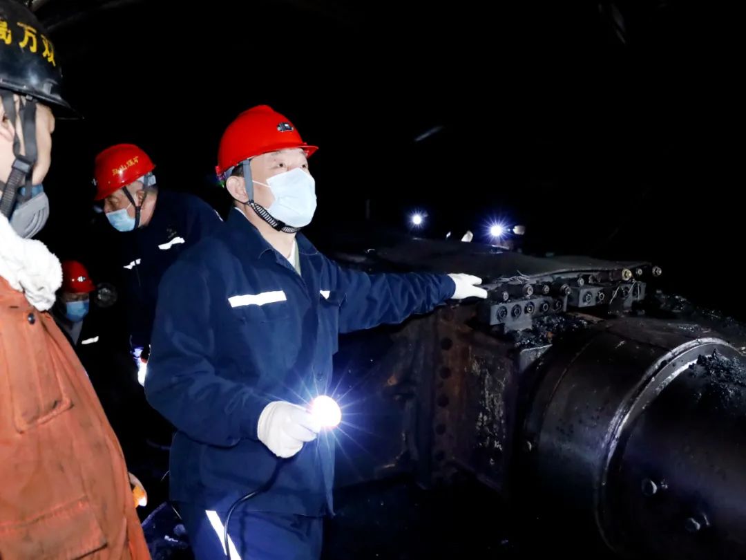 在鸟山矿综掘区1101队作业现场,王佳喜听取了当班安瓦员的工作汇报,详细了解了工程设计方案、地质构造、施工进度及防冲措施执行情况,并对巷道施工质量、局部通风质量,及工作面支护工艺、综掘机和单轨吊在实际生产中的使用效果等情况进行了检查。