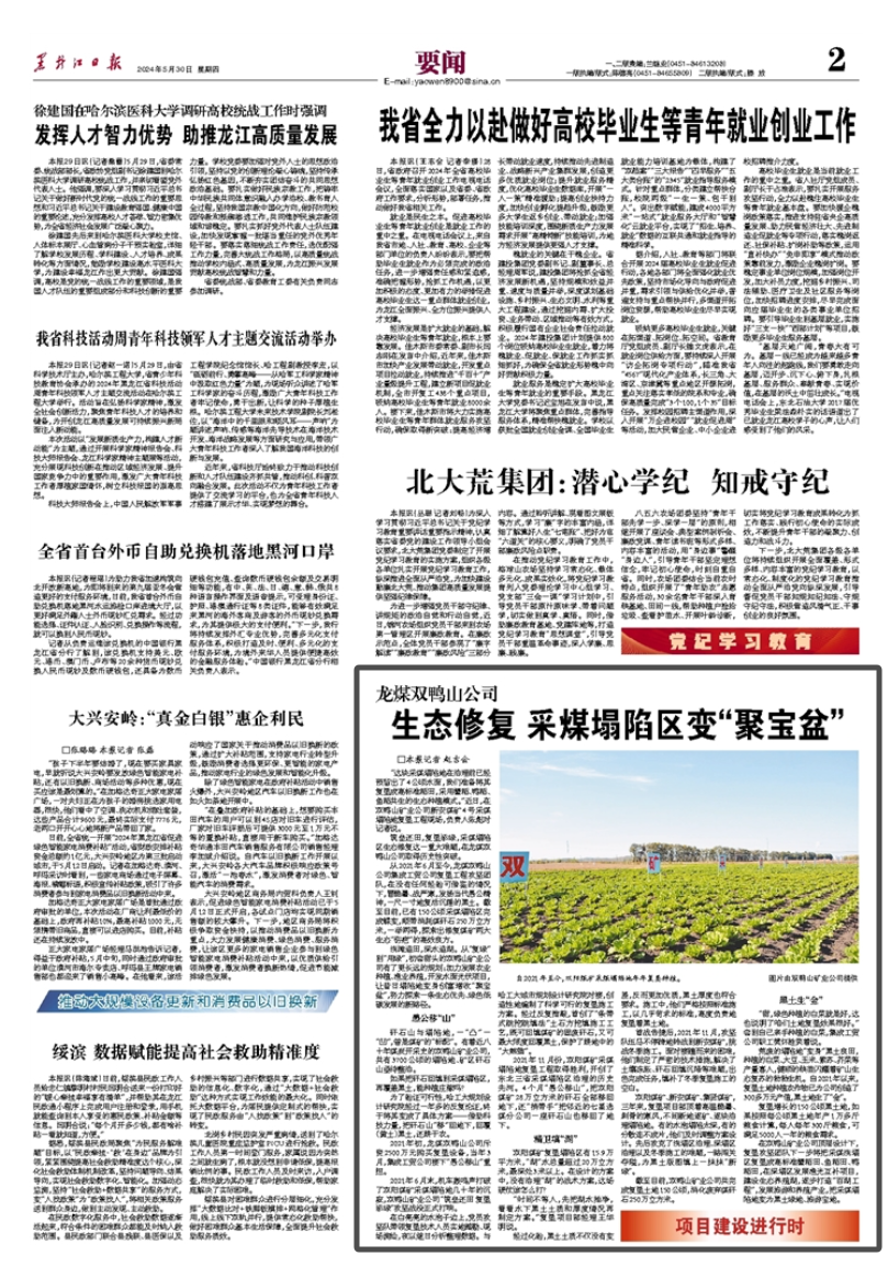 筑垒还田,复垦添绿,采煤塌陷区生态修复这一重大难题,在龙煤双鸭山公司取得历史性突破。