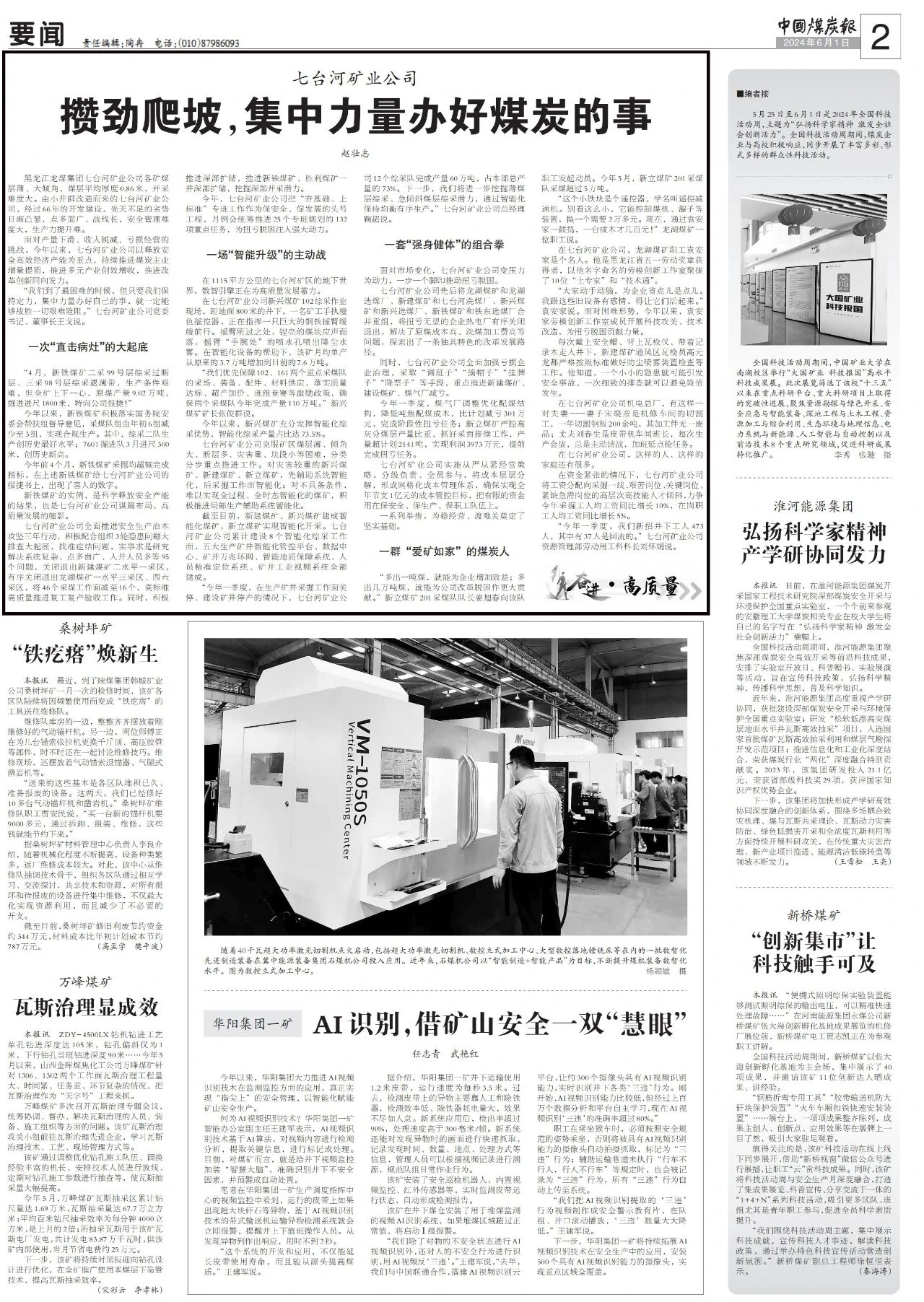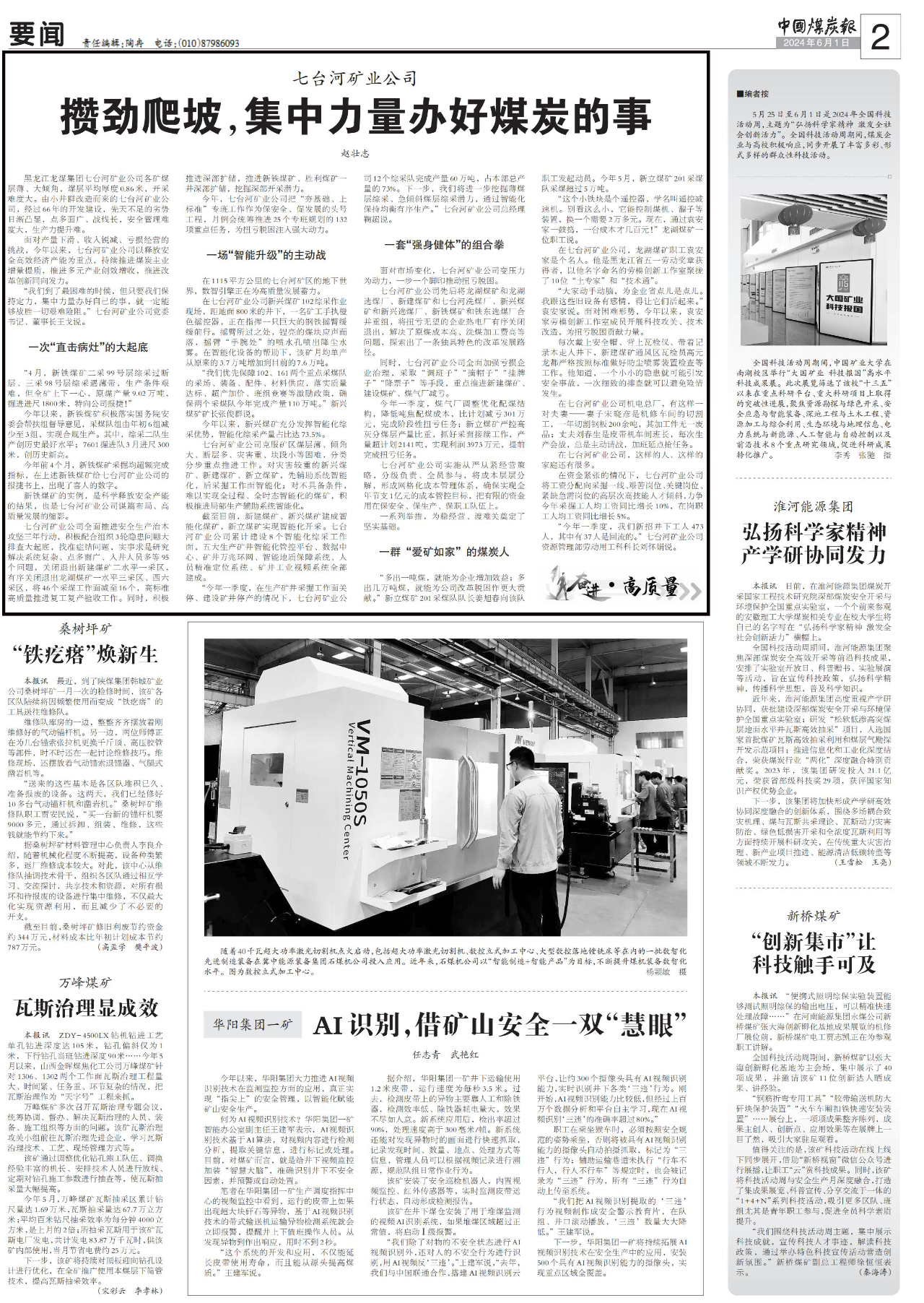 “今年一季度,在生产矿井采掘工作面关停、建设矿井停产的情况下,七台河矿业公司12个综采队完成产量60万吨,占本部总产量的73%。下一步,我们将进一步挖掘薄煤层综采、急倾斜煤层综采潜力,通过智能化保持均衡有序生产。”七台河矿业公司总经理鞠超说。