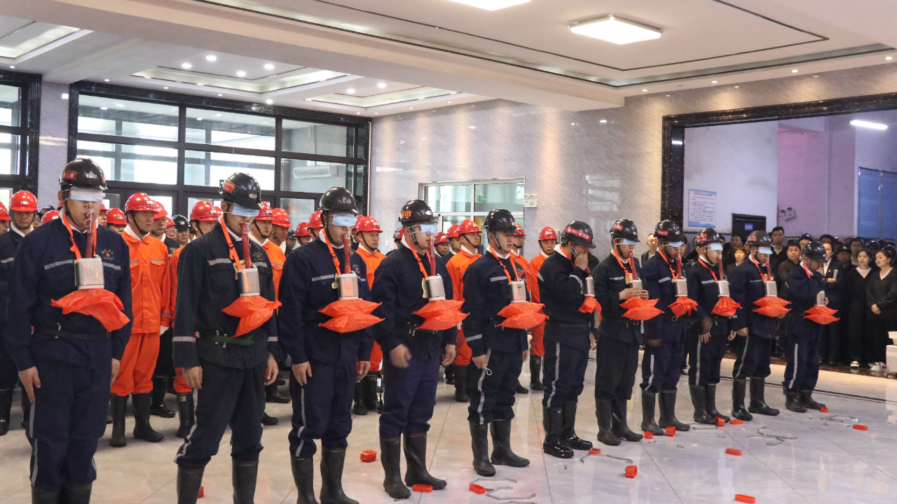 富力矿组织职工进行自救器实际操作演练,职工现场观摩,进一步提高了职工的应急自救能力。