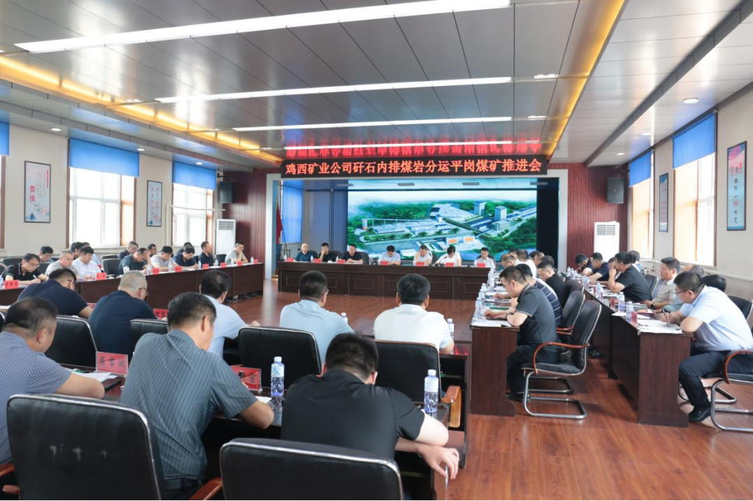 图为鸡西矿业公司矸石内排煤岩分运平岗矿推进会现场