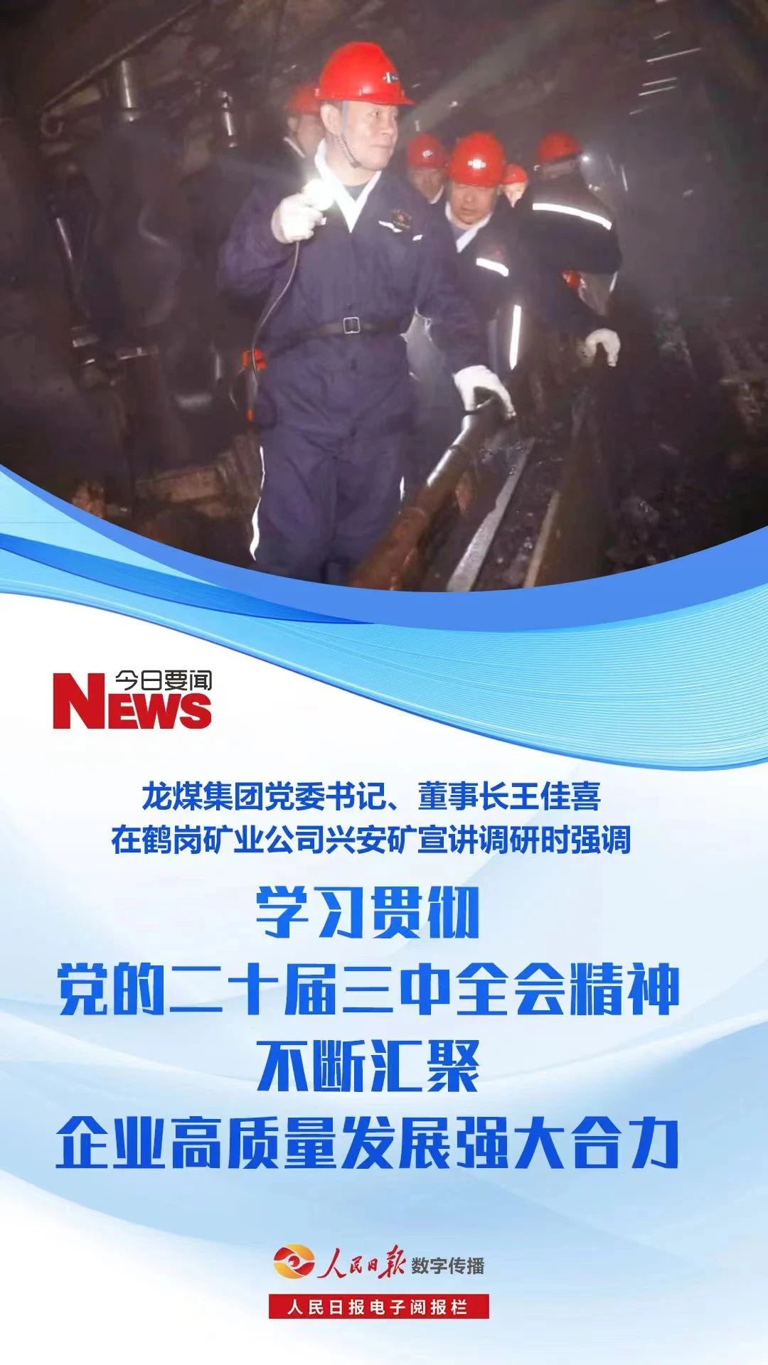 9月14日上午,集团公司党委书记、董事长王佳喜在深入鹤岗矿业公司兴安矿宣讲调研时强调,要深入学习贯彻党的二十届三中全会精神,推动集团公司全面深化改革不断向纵深发展,务求取得实效,进一步筑牢企业高质量发展基础。