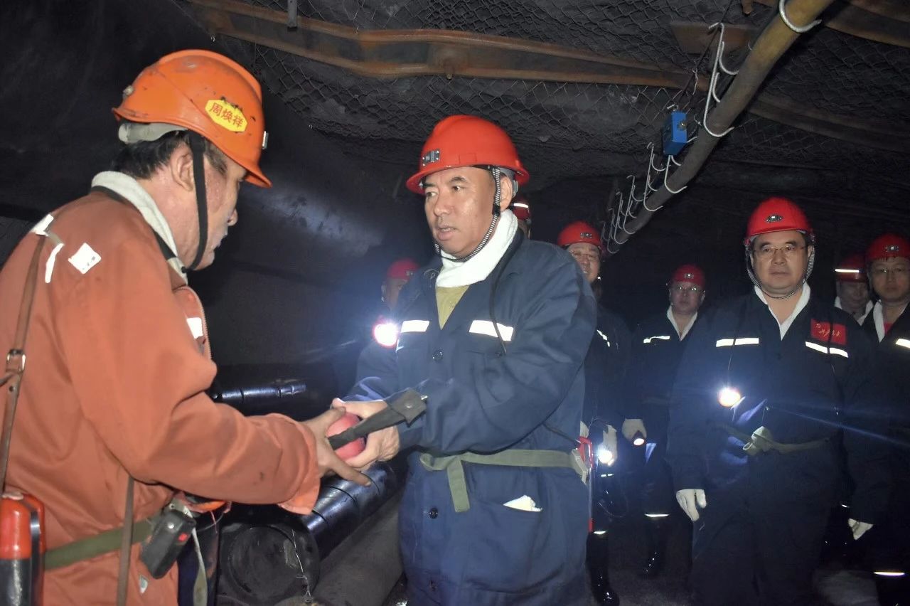 杨成太还利用矿用本安型手机与地面安全生产指挥中心进行视频通话,听取了矿井安全生产有关情况的汇报,并查看了微信带班工作群的使用情况。他强调,高质量发展离不开科技创新的支撑引领,要充分利用信息化、数字化、互联网+等技术,加大矿用本安型手机推广应用力度,积极探索入井带班新模式,持续推动井下作业视频、现场双监管。要充分利用井下信息网络,积极投身于智能化采掘技术的探索与实践,在设备远程操控、AI自动运行上下功夫,在设备置换人力、降低人工干预程度上做文章,有效释放矿井优质产能,切实将科技创新转化为驱动发展的强大动力源泉。