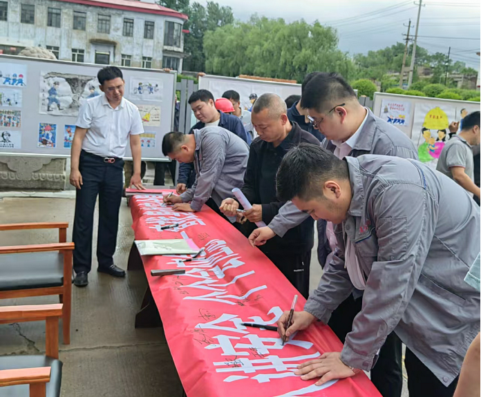 开展“安全承诺签名”活动。6月16日“安全宣传咨询日”,各单位职工在“安全承诺墙”上郑重签名。方圆公司活动现场布置安全知识展板,大屏幕上循环播放《安全防护装备使用规范》。活动后,签名墙悬挂于入井走廊、车间等醒目位置,吸引广大职工驻足观看。“这是对安全的承诺,井下每一步操作都要规范。”东荣二矿掘进队队长指着自己名字说。全公司24家单位共4323人参与签名,以行动践行安全诺言。