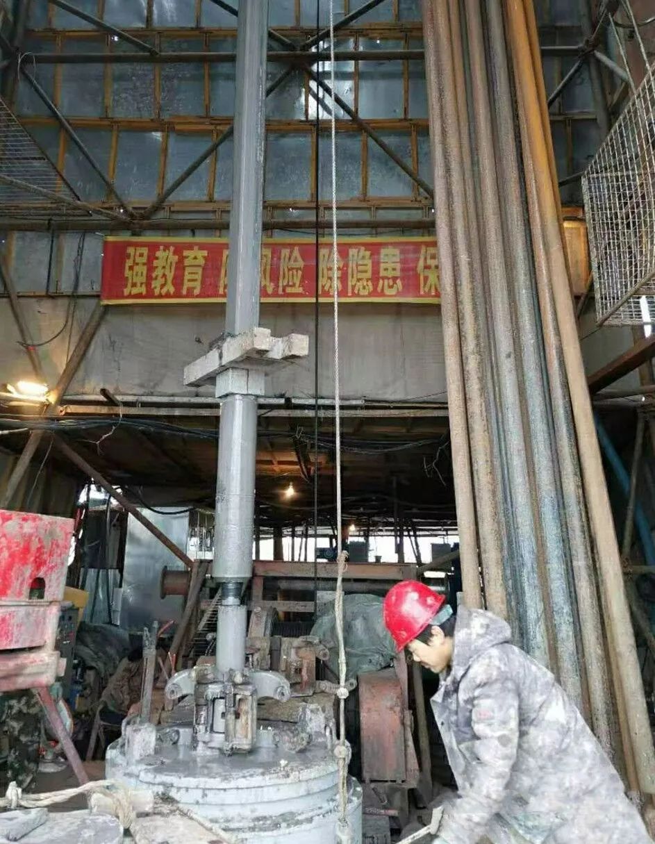 图为双阳矿水害治理一期工程Y9水平分支终孔上提钻具,为注浆做准备。