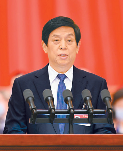 受全国人大常委会委托,栗战书委员长向大会报告全国人大常委会工作。栗战书在报告中指出,在以习近平同志为核心的党中央坚强领导下,全国人大常委会坚持以习近平新时代中国特色社会主义思想为指导,深入贯彻习近平法治思想,履职尽责、积极作为,为推动重大工作部署、应对重大风险挑战、维护国家安全提供法律保障,有效发挥了国家权力机关的职能作用。