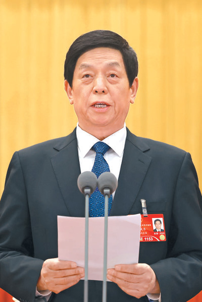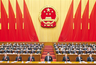 3月5日,第十三届全国人民代表大会第五次会议在北京人民大会堂开幕。大会主席团常务主席、执行主席栗战书主持大会。新华社记者 黄敬文摄