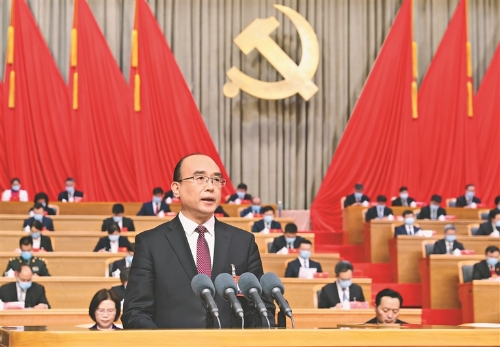4月29日,许勤在中国共产党黑龙江省第十三次代表大会上作题为《奋进新征程 再创新辉煌 为实现黑龙江全面振兴全方位振兴而奋斗》的报告。 黑龙江日报全媒体记者 郭俊峰 邵国良摄