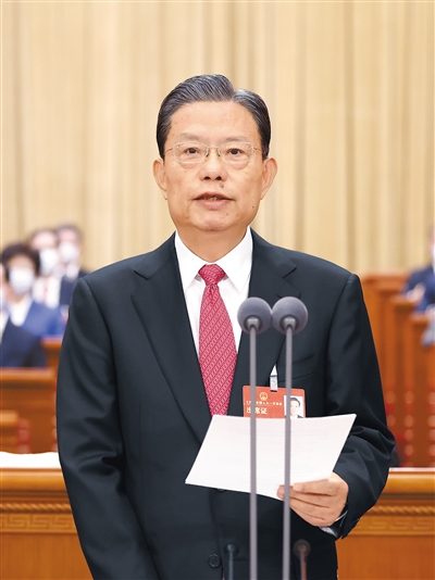 过去五年,在以习近平同志为核心的党中央坚强领导下,在栗战书同志主持下,十三届全国人大及其常委会坚持以习近平新时代中国特色社会主义思想为指导,全面贯彻中央人大工作会议精神,围绕党和国家工作大局履职尽责、担当作为,各方面工作都取得新的重大进展,为党和国家事业发展作出了重要贡献。在这里,我谨代表十四届全国人大及其常委会,向十三届全国人大代表,向十三届全国人大常委会组成人员,向栗战书同志,致以崇高的敬意!
