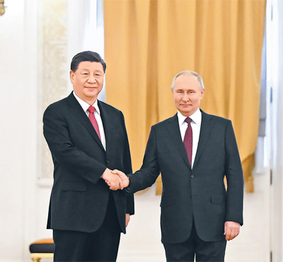 本报莫斯科3月21日电 (记者杜尚泽、曲颂)当地时间3月21日下午,国家主席习近平在莫斯科克里姆林宫同俄罗斯总统普京举行会谈。两国元首就中俄关系及共同关心的重大国际和地区问题进行了真挚友好、富有成果的会谈,达成许多新的重要共识。双方一致同意,本着睦邻友好、合作共赢原则推进各领域交往合作,深化新时代全面战略协作伙伴关系。