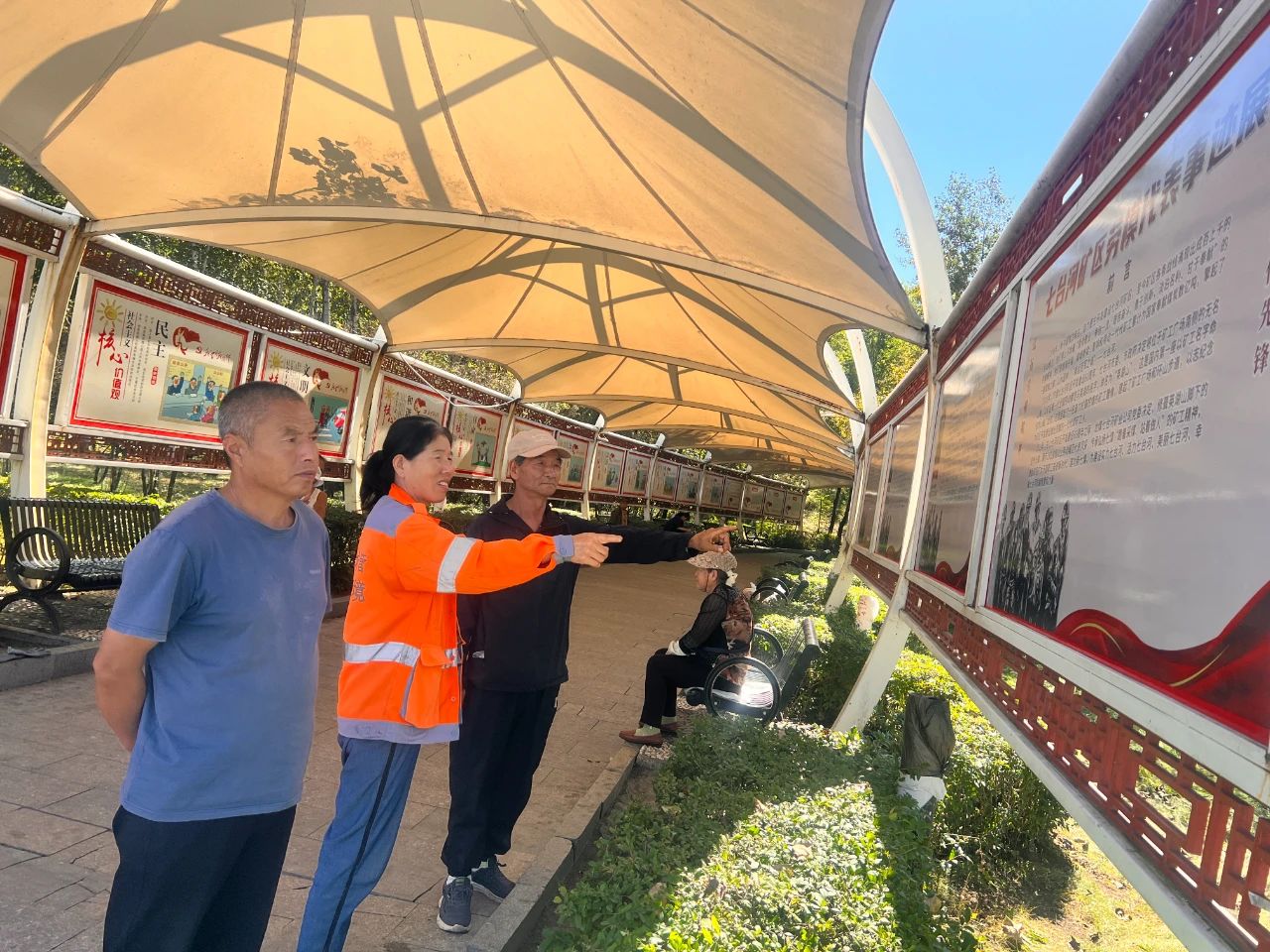 矿工节当天,在“七台河矿区劳模代表事迹展”宣传牌板前,参观的人络绎不绝。园区内的保洁大姐说,这块宣传牌板虽然看似普通,不知道为什么,特别吸引人,很多人在板前留连忘返,从前到后看得很仔细。一位名叫李安柱的老大爷说,七台河因煤而兴、因煤立市,没有七台河矿区的发展就没有七台河市今天的发展,为此,他把展板前言、劳模代表事迹,每一个字都认真读了一遍,觉得很有教育意义。他还打算带着上小学的孙子来,也让孩子接受一下教育。