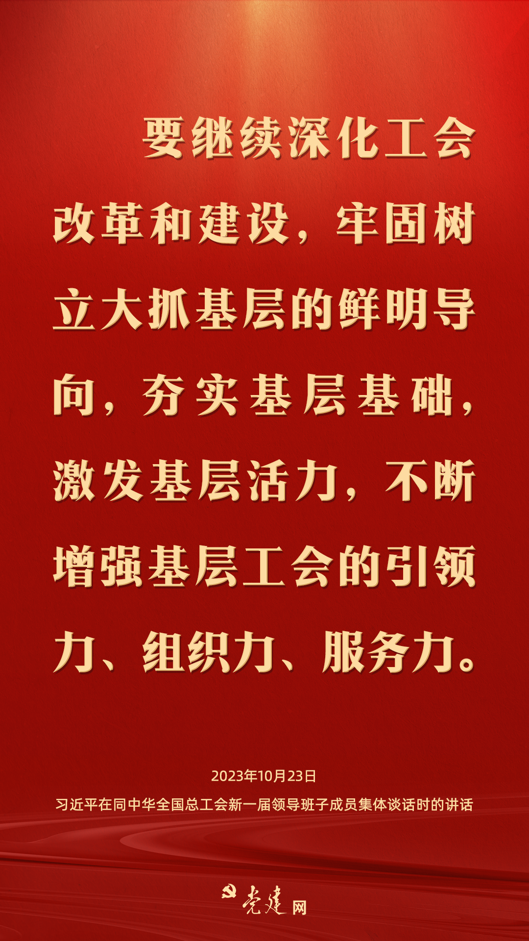 10月23日,习近平总书记在中南海同中华全国总工会新一届领导班子成员集体谈话并发表重要讲话,明确了工会工作的前进方向和目标任务。快来一图学习习近平总书记对工会工作的殷殷嘱托!
