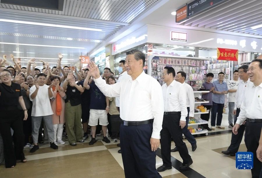 2023年9月20日,习近平在浙江省金华市义乌市义乌国际商贸城考察时,同商户亲切交流。新华社记者 李学仁 摄